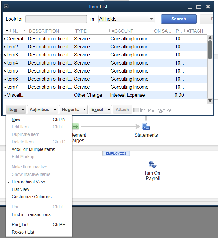 1. In QuickBooks, go to **Lists** → **Item List**.